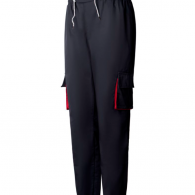 8687K 春秋涤棉松紧拼色裤, 黑红色,160