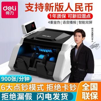 得力(deli)点钞机验钞银行专用新版人民币便携式智能语音验钞器 双屏显示 白色【 33302s】, 单品