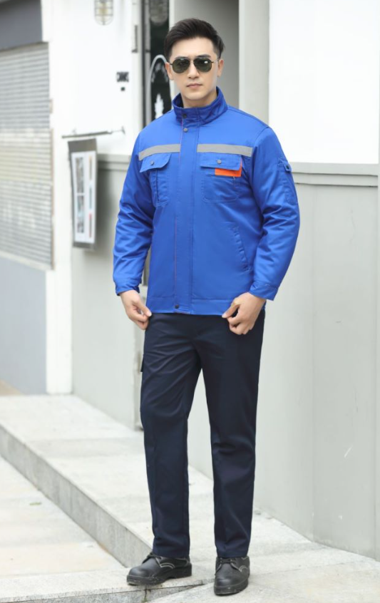 干部服翻领行政夹克纯棉工作服, 浅蓝色,170