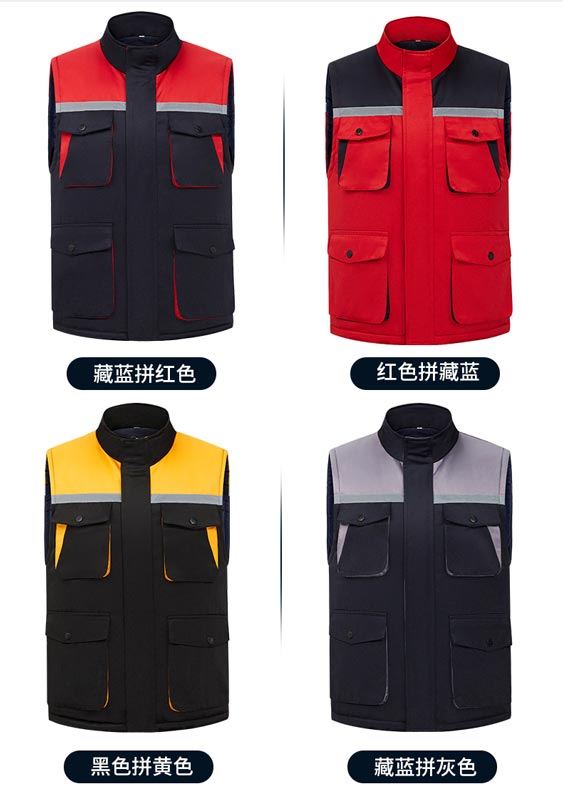 面料:精品加厚纱卡100%聚酯纤维 里料:防静电里衬 丝绵内胆 工艺:不可拆卸内胆,前后反光条 |