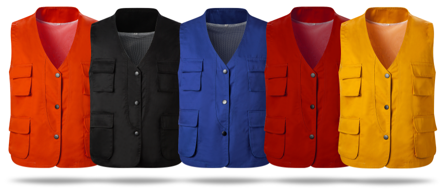 | 面料:加厚涤棉厚纱卡 T/C 80/20 工艺:立体多口袋 内衬全网眼 |