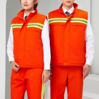 工作服活动加厚四兜棉环卫马甲, 170,桔色